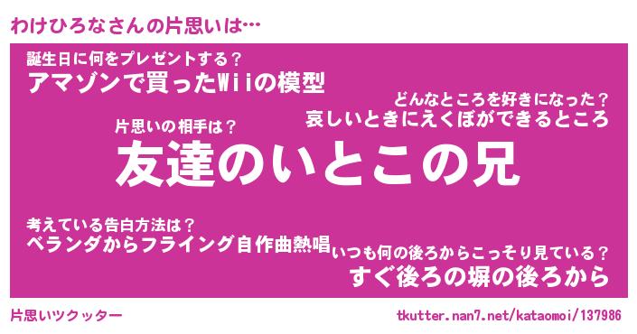 | ファンタジー風あだ名 | 『ワケフェル』『エターナルワケヒロナー』 |