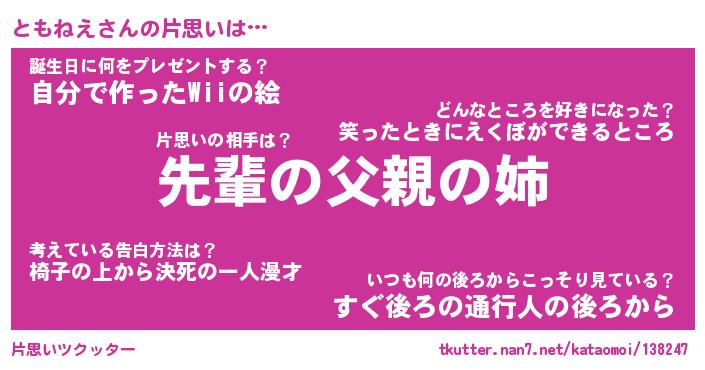 | 胡散臭い通販商品みたいなあだ名 | 『モテモテ間違いなし水晶球…その名も「ともねえ」』 |