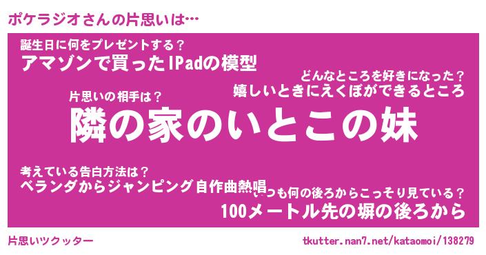 | ヘコむあだ名 | 『ポケもー』『なまこ酢』『ポケっぺ』 |