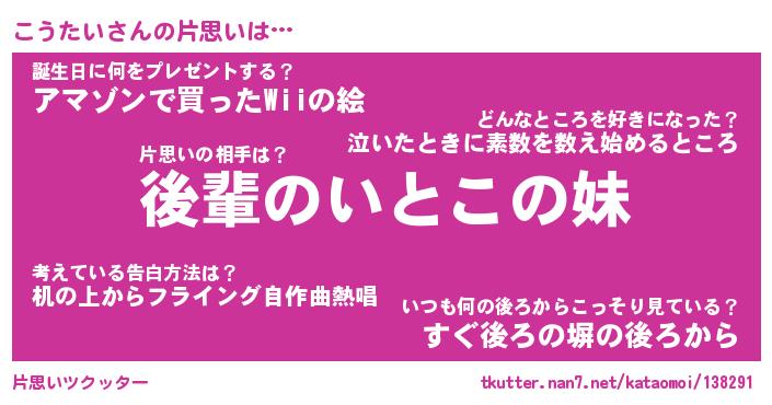 | ヘコむあだ名 | 『こうもー』『牛乳』『こう太郎』 |