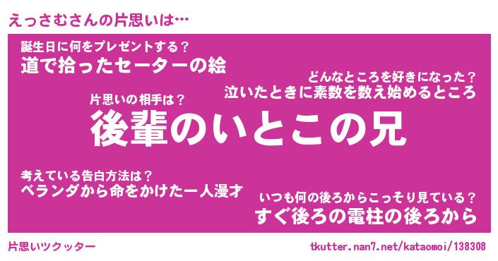 | 胡散臭い通販商品みたいなあだ名 | 『億万長者になれる水晶球…その名も「えっさむ」』 |