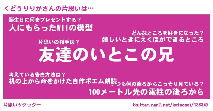 | ヘコむあだ名 | 『くどにゅー』『つくし』『くどお』 |