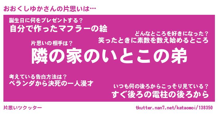 | ヘコむあだ名 | 『おおにゅー』『つくし』『おおっぺ』 |