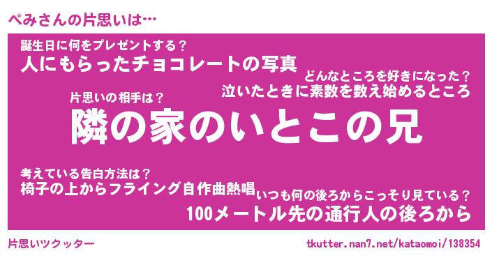 | ヘコむあだ名 | 『ぺみもー』『酢こんぶ』『ぺみお』 |