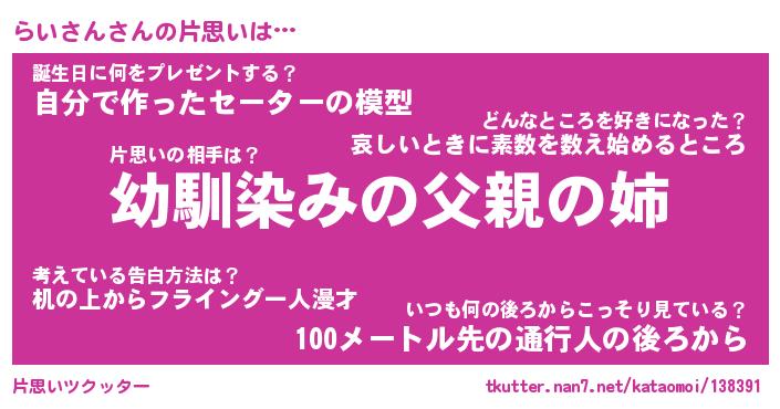 | 男性向けラノベタイトル風あだ名 | 『らいさんの憂鬱』 |