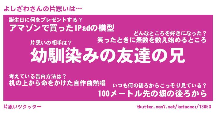| 男性向けラノベタイトル風あだ名 | 『よしざわの憂鬱』 |