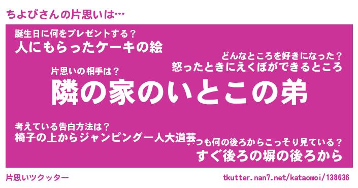| 2回繰り返すあだ名 | 『ちよちよ』『ちちよよ』『ぶかぶか』 |