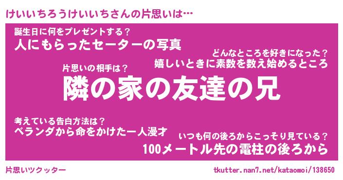 | 胡散臭い通販商品みたいなあだ名 | 『必ず成功する霊験あらたかなお札…その名も「けいいちろうけいいち」』 |