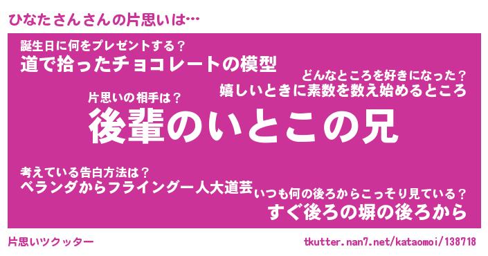 | ヘコむあだ名 | 『ひなにゅー』『牛乳』『ひなっちょ』 |