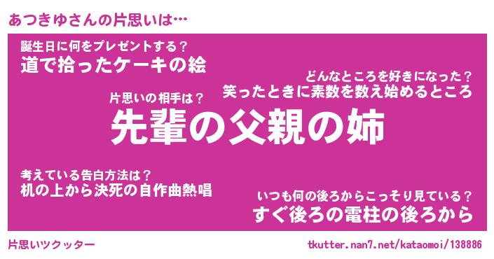 | 男性向けラノベタイトル風あだ名 | 『あつきゆの憂鬱』 |