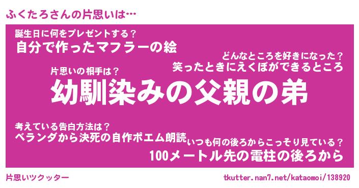 | ヘコむあだ名 | 『ふくにゅー』『つくし』『ふくを』 |
