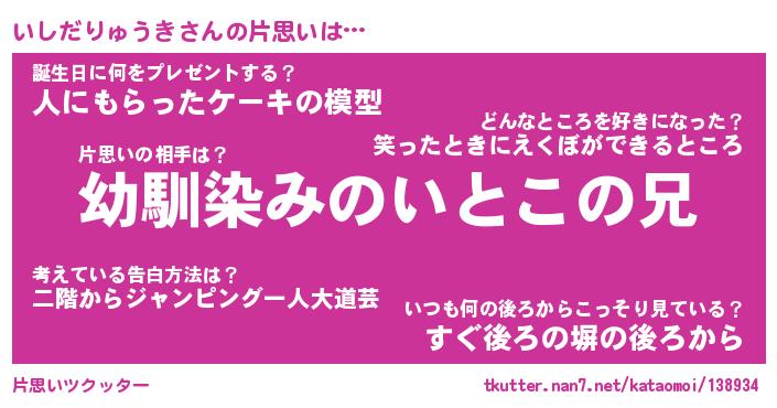 | 恥ずかしいあだ名 | 『プリティーいしだりゅうき』『いしちん』 |
