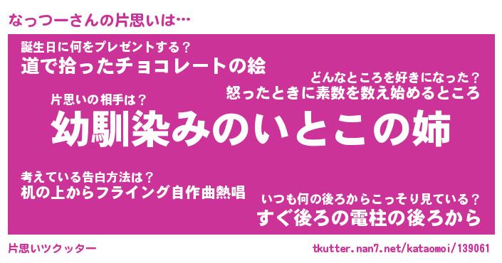 | 欧米人風あだ名 | 『マイケルなっつー』『ウサインなっつー』 |