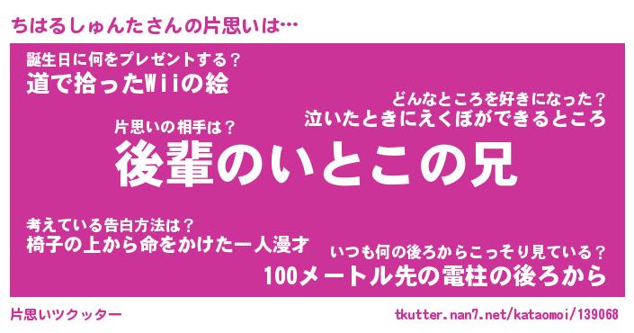 | ヒーロー風カッコイイあだ名 | 『スーパーチハルシュンタ』 |