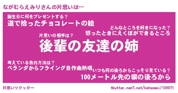 | 女子向けラノベタイトル風あだ名 | 『誰かこのながむらえみりを説明してください! ~契約から始まるウェディング~』 |