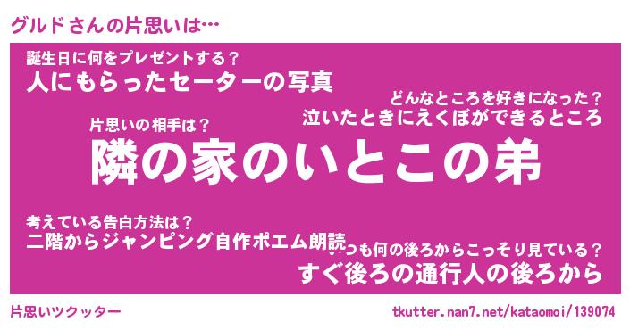 | 男性向けラノベタイトル風あだ名 | 『グルドの憂鬱』 |