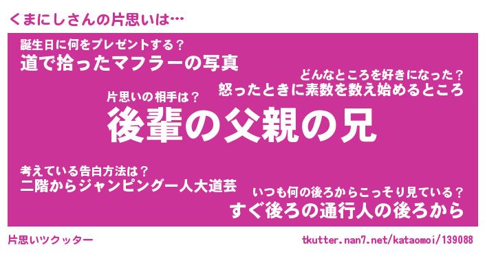 | 意味不明あだ名 | 『ペロリンくまにし』『永久保存くまにし』 |