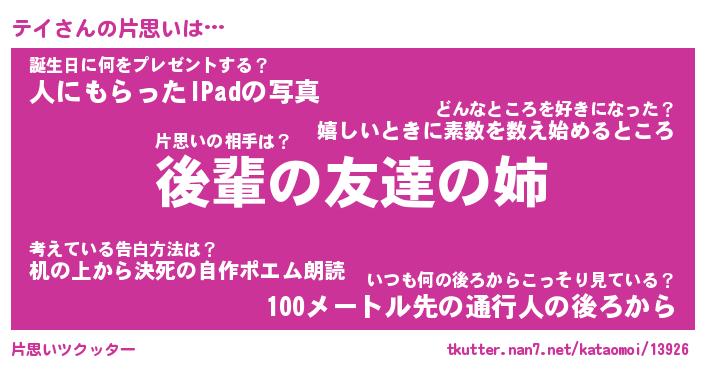 | ヘコむあだ名 | 『テイっふぃ~』『なまこ酢』 |