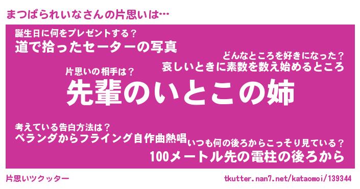 | 胡散臭い通販商品みたいなあだ名 | 『モテモテ間違いなし水晶球…その名も「まつばられいな」』 |
