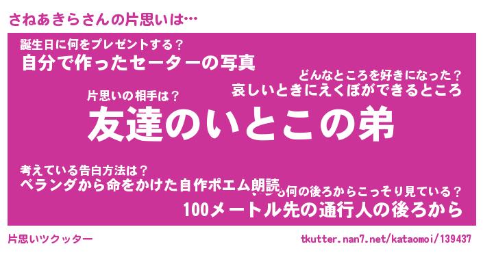| ヘコむあだ名 | 『さねにゅー』『つくし』『さね太郎』 |