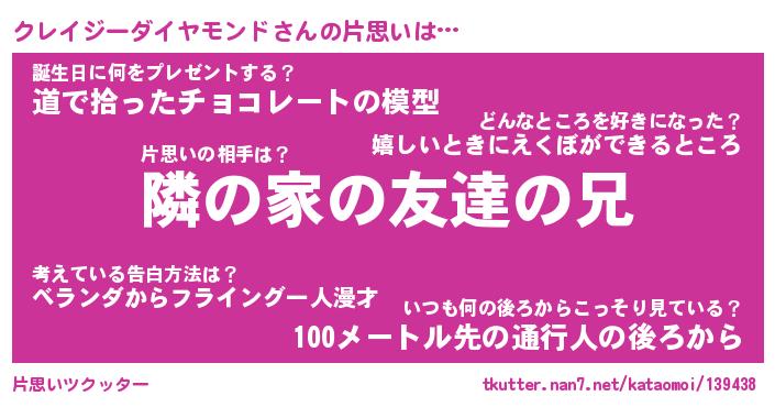 | 男性向けラノベタイトル風あだ名 | 『クレイジーダイヤモンドの憂鬱』 |