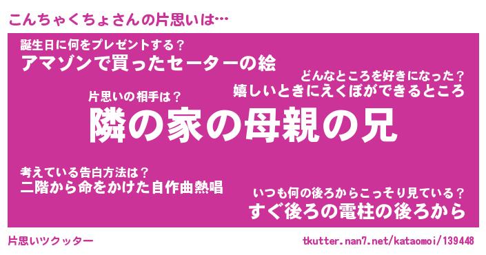 | 胡散臭い通販商品みたいなあだ名 | 『必ず成功するブレスレット…その名も「こんちゃくちょ」』 |