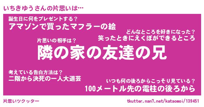 | 男性向けラノベタイトル風あだ名 | 『いちきゆうの憂鬱』 |
