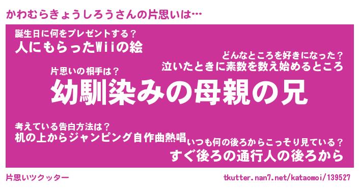 | 肩書あだ名 | 『かわむらきょうしろう社長』 |