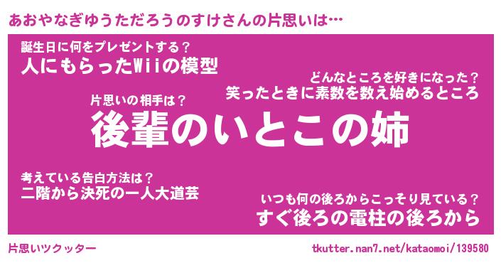 | 胡散臭い通販商品みたいなあだ名 | 『モテモテ間違いなし水晶球…その名も「あおやなぎゆうただろうのすけ」』 |