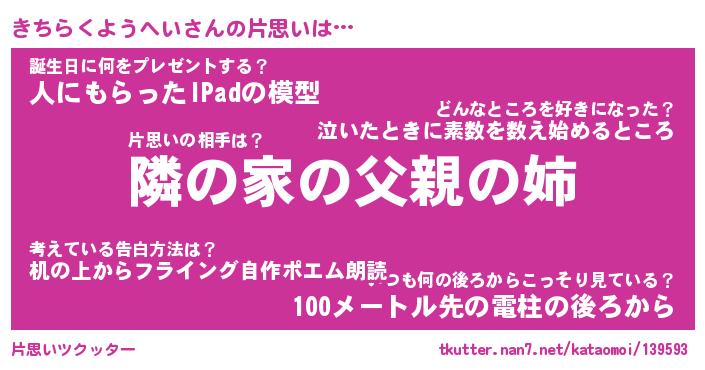 | 胡散臭い通販商品みたいなあだ名 | 『必ず成功する水晶球…その名も「きちらくようへい」』 |