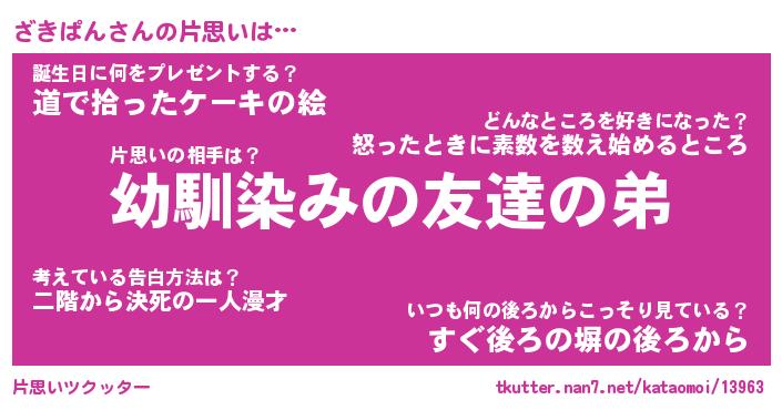 | 男性向けラノベタイトル風あだ名 | 『ざきぱんの憂鬱』 |