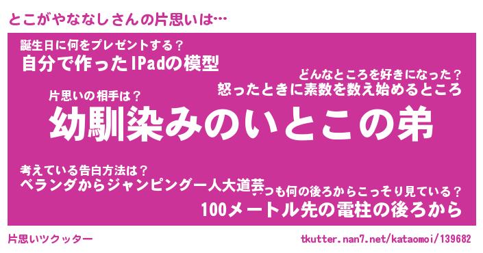 | ヘコむあだ名 | 『とこもー』『つくし』『とこっ子』 |