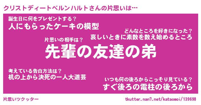 | 男性向けラノベタイトル風あだ名 | 『クリストディートベルンハルトの憂鬱』 |