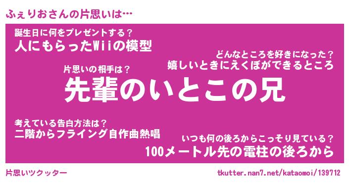 | ヘコむあだ名 | 『ふぇもー』『豆乳』『ふぇっちょ』 |