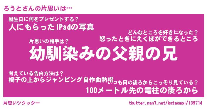 | ヘコむあだ名 | 『ろうにゅー』『つくし』『ろうお』 |