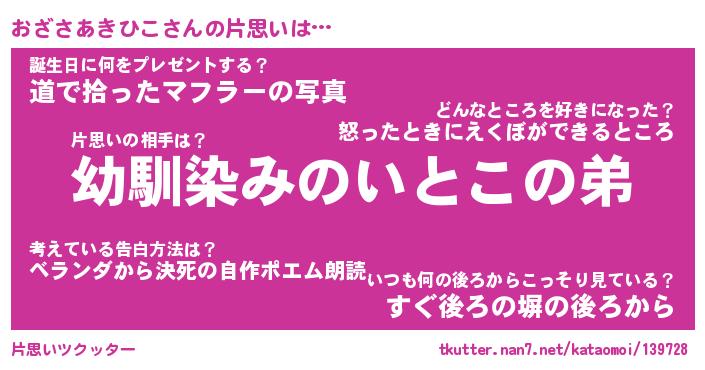 | 女子向けラノベタイトル風あだ名 | 『(仮)おざさあきひこのやんごとなき事情』 |