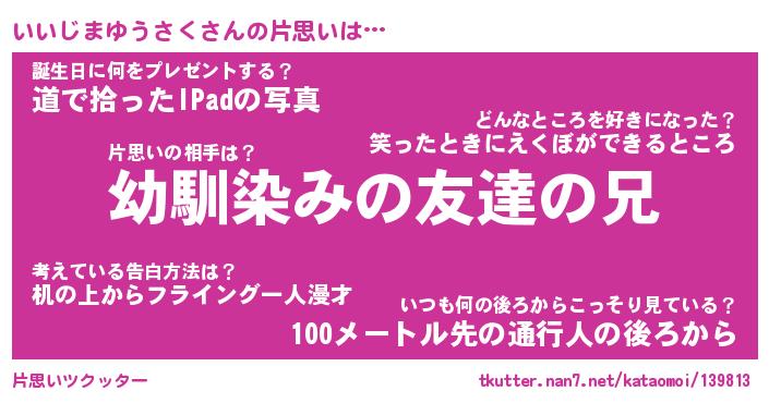 | 男性向けラノベタイトル風あだ名 | 『いいじまゆうさくの憂鬱』 |