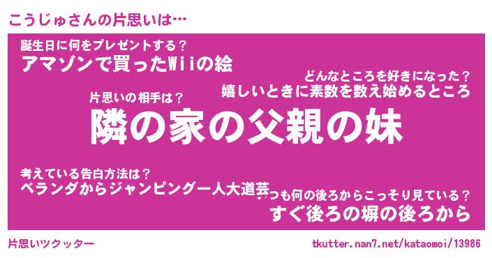 | 胡散臭い通販商品みたいなあだ名 | 『必ず成功するブレスレット…その名も「こうじゅ」』 |