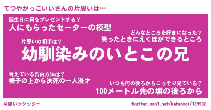 | ヘコむあだ名 | 『てつもー』『牛乳』『てつっ子』 |