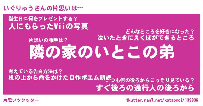 | 男性向けラノベタイトル風あだ名 | 『いぐりゅうの憂鬱』 |