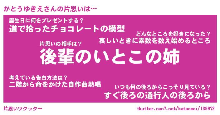 | ヘコむあだ名 | 『かとにゅー』『牛乳』『かとお』 |