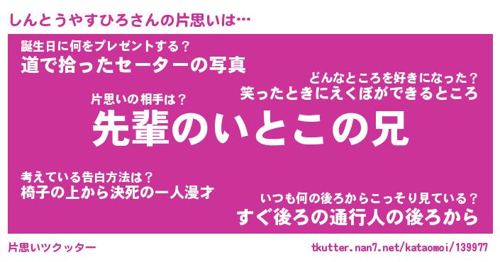 | 胡散臭い通販商品みたいなあだ名 | 『モテモテ間違いなし水晶球…その名も「しんとうやすひろ」』 |