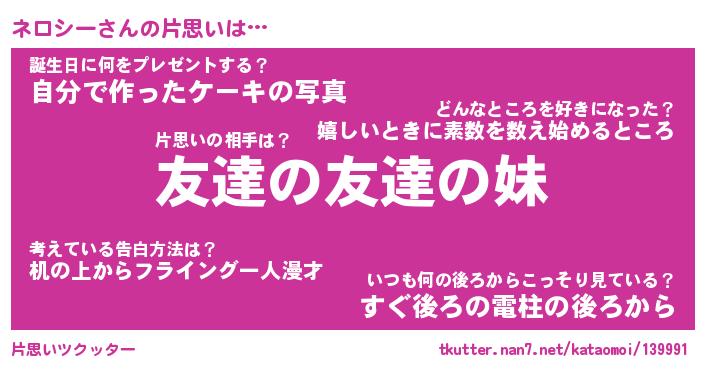 | ヘコむあだ名 | 『ネロっふぃ~』『牛乳』『ネロっぺ』 |