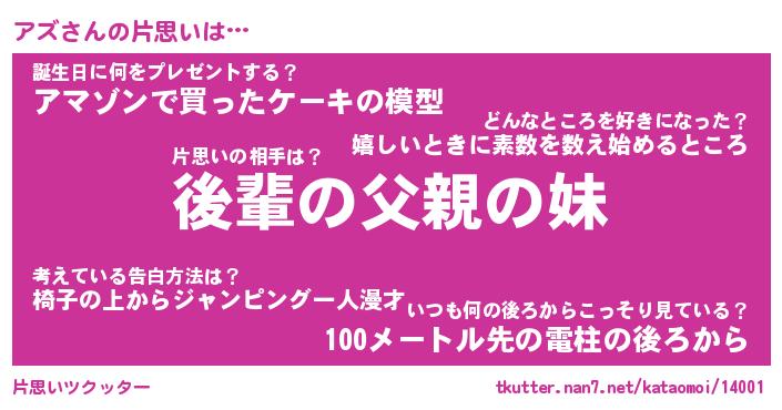 | ヘコむあだ名 | 『アズにゅー』『なまこ酢』 |