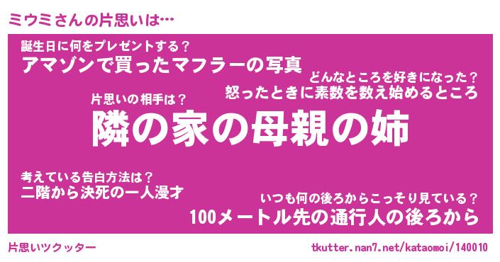 | ヘコむあだ名 | 『ミウふぇ~』『なまこ酢』 |