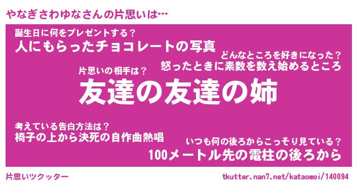 | 女子向けラノベタイトル風あだ名 | 『誰かこのやなぎさわゆなを説明してください! ~契約から始まるウェディング~』 |