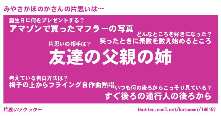 | ヘコむあだ名 | 『みやにゅー』『酢こんぶ』 |