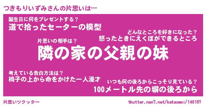 | 胡散臭い通販商品みたいなあだ名 | 『必ず成功する水晶球…その名も「つきもりいずみ」』 |