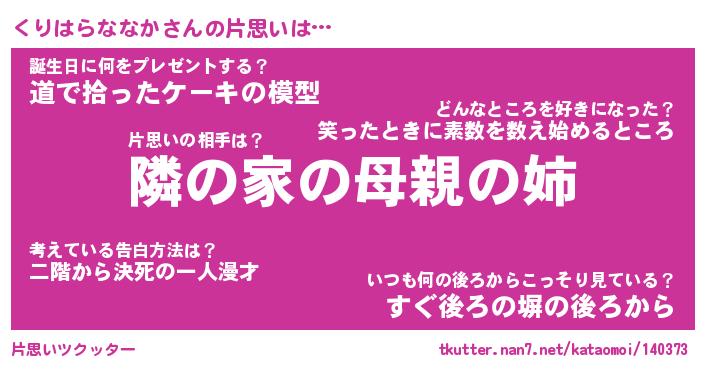 | 胡散臭い通販商品みたいなあだ名 | 『必ず成功するブレスレット…その名も「くりはらななか」』 |