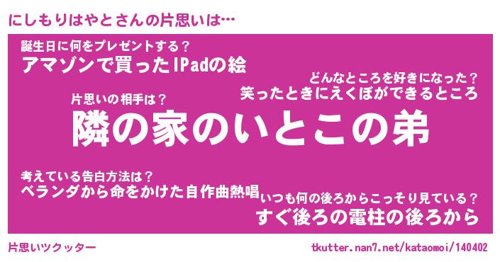 | 胡散臭い通販商品みたいなあだ名 | 『必ず成功する水晶球…その名も「にしもりはやと」』 |